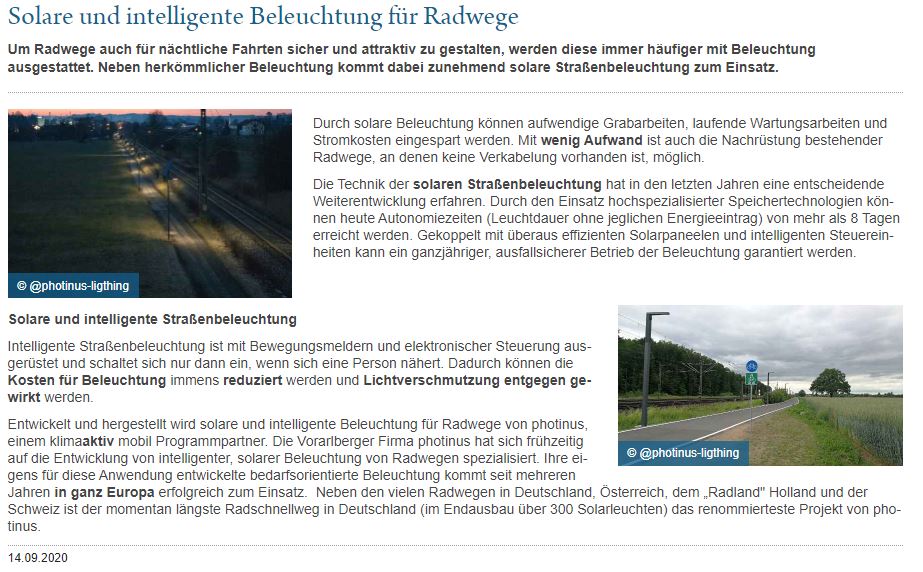 Solare und intelligente Beleuchtung für Radwege