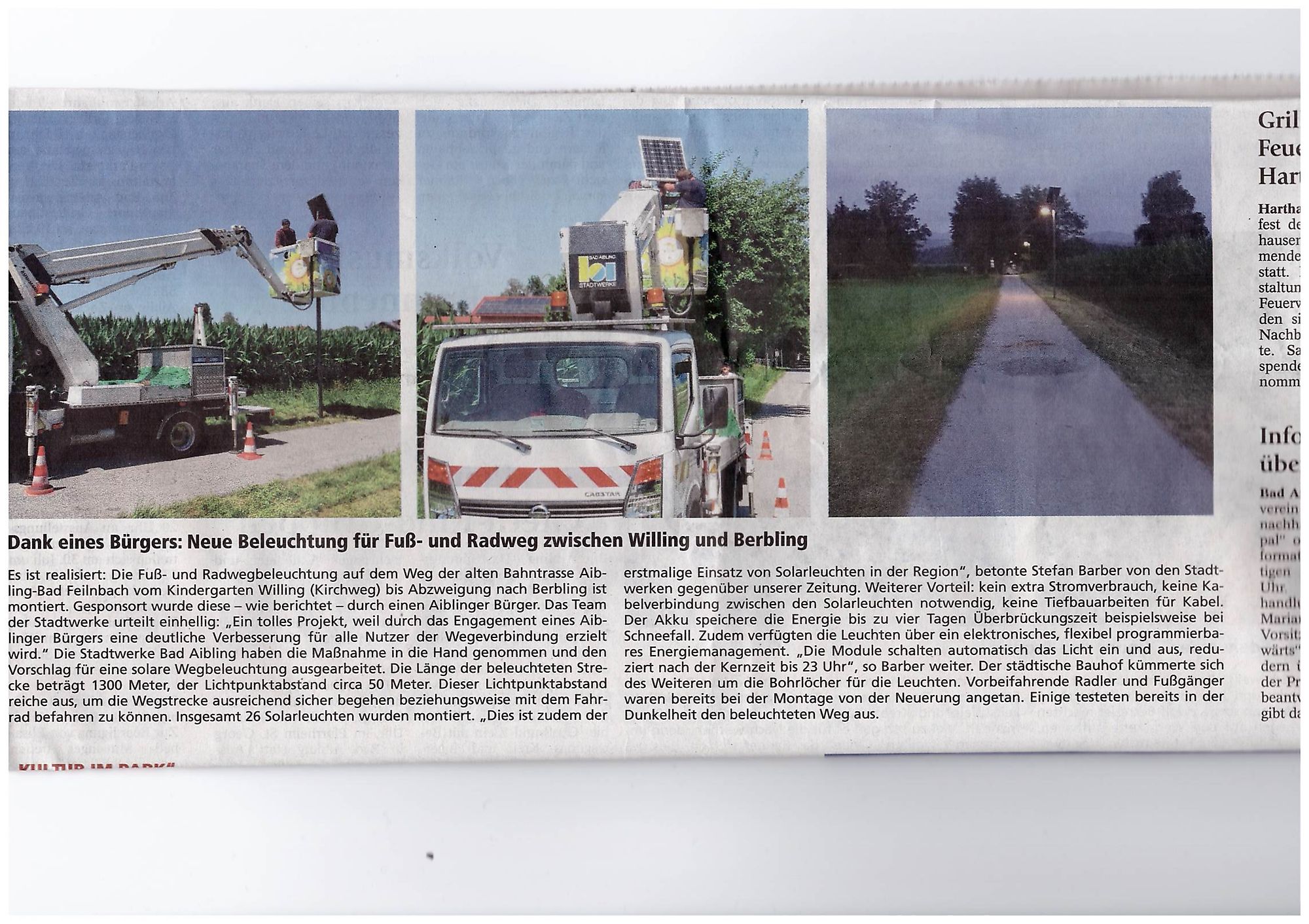 Vorbildhafte Solarbelechtung für Radweg Aibling